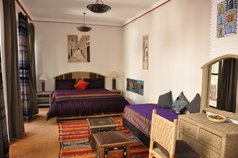 This spacious suite is located on the 2nd floor and boasts a view of the whole Riad. It has a large double bed 160, a single bed and a private terrace.