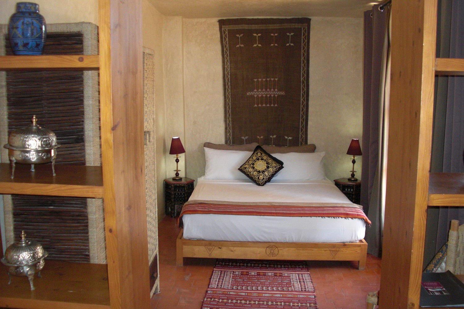 This room is located on the 1st floor and offers a view of the riad. It has a small private terrace.